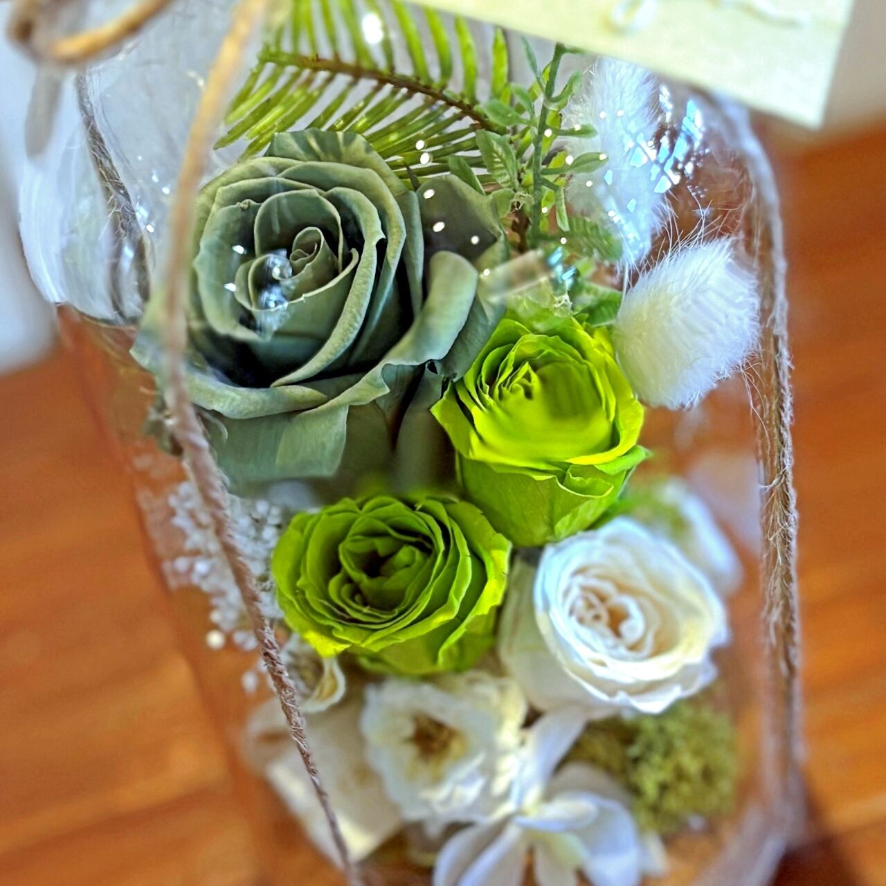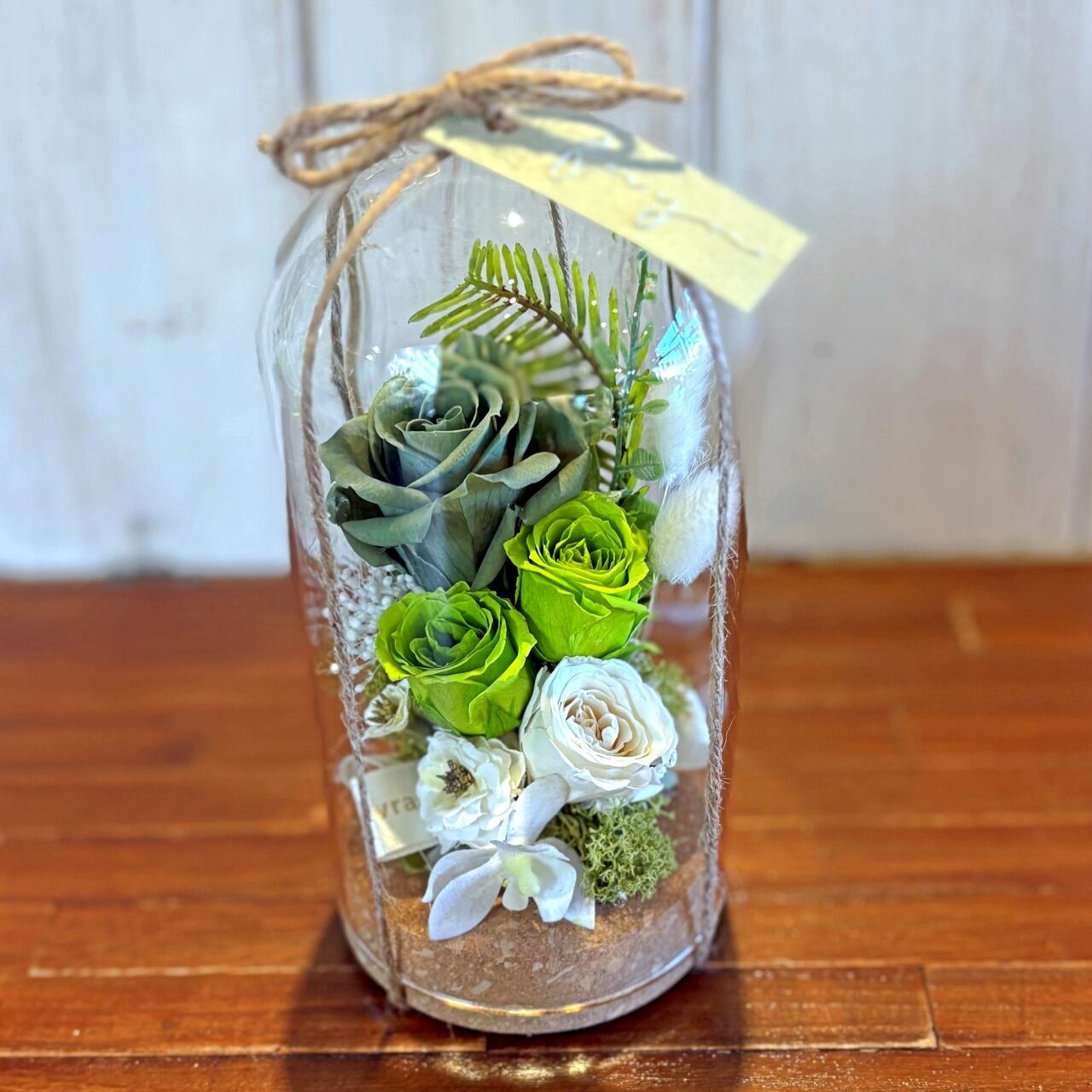 プリザーブドフラワー・ガラスドーム Little Green 【送料込み】現品限り!