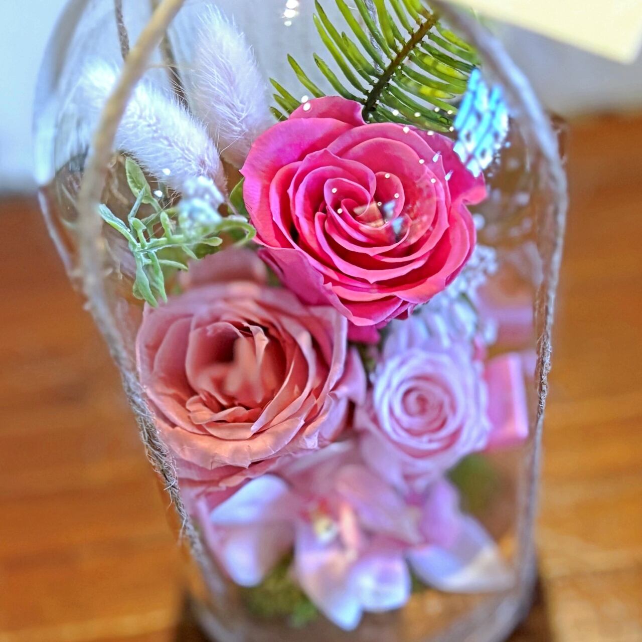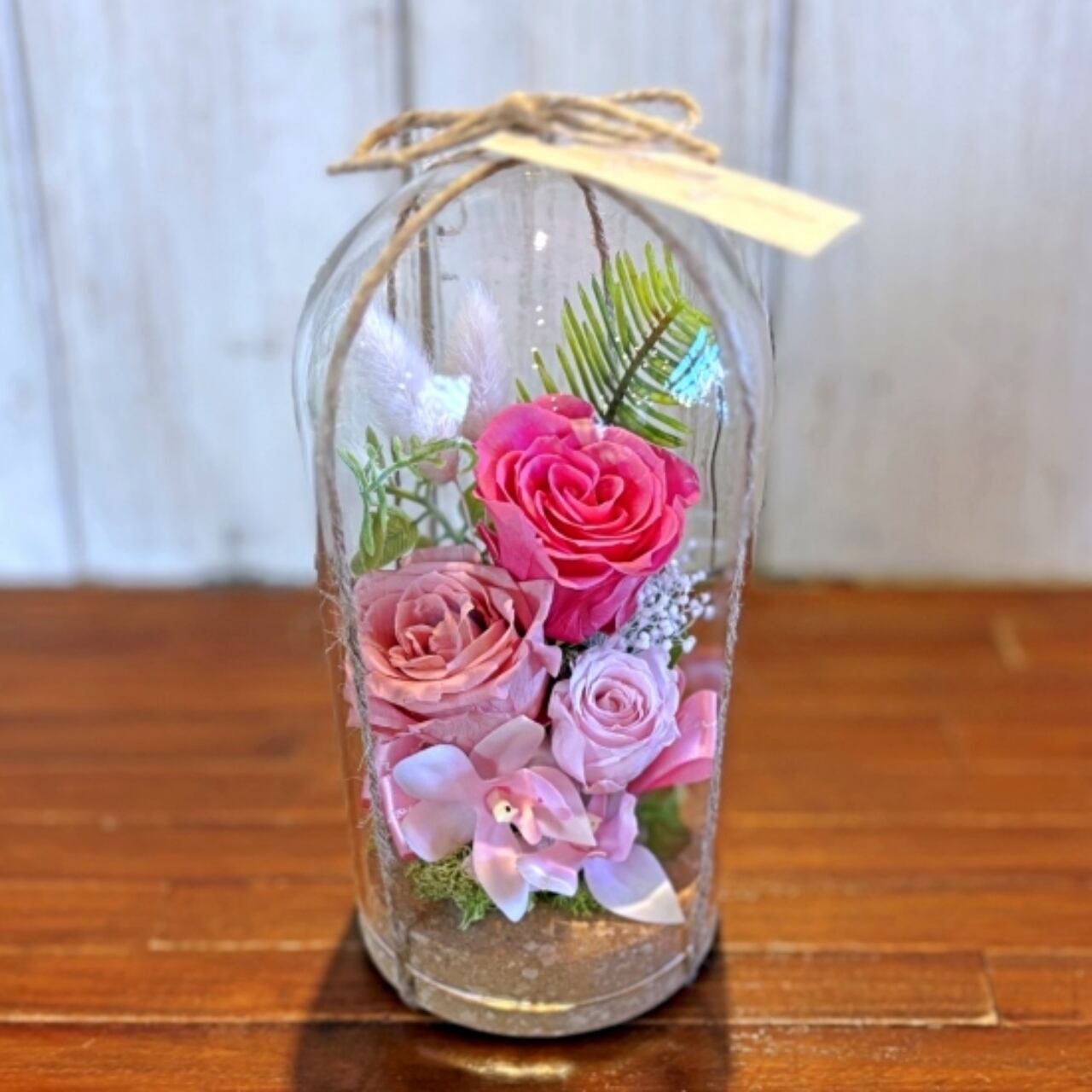 プリザーブドフラワー・ガラスドーム Little LovelyPink 【送料込み】現品限り!